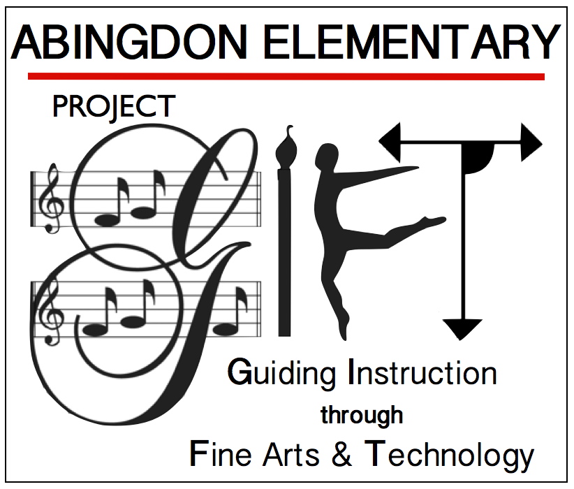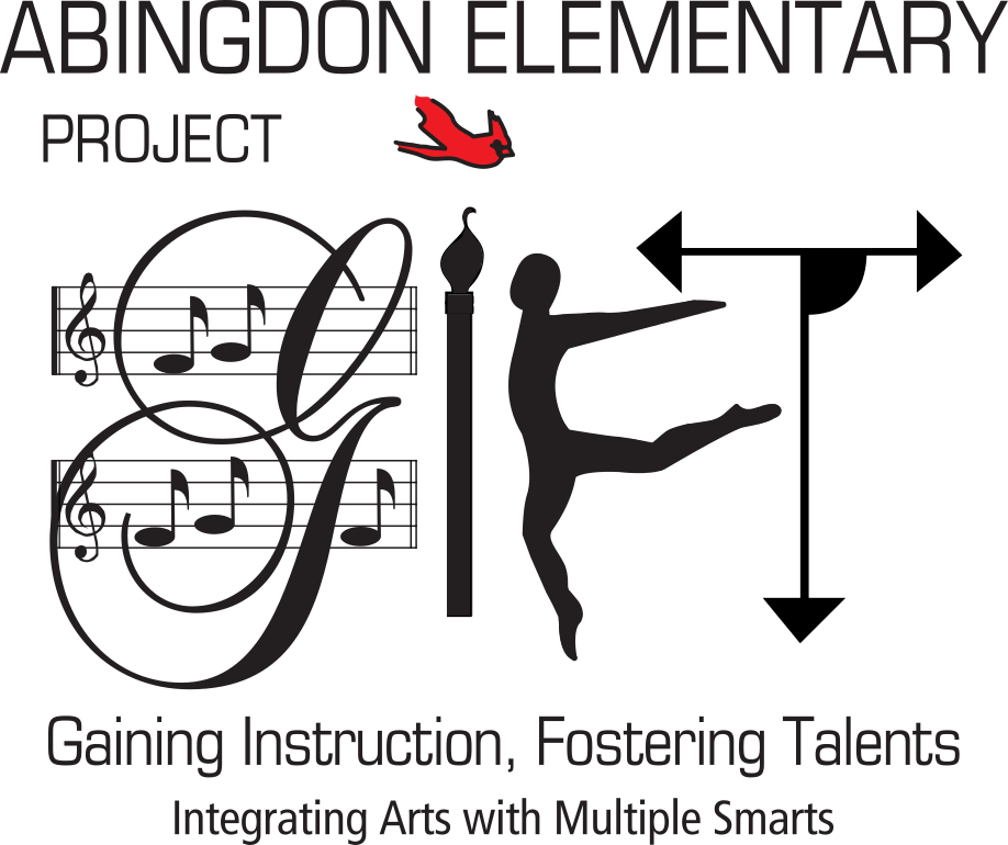 Project GIFT originated sometime before 2007, when it stood for “Gaining Instruction, Fostering Talents.” The logo originated in September 2010, along with the slogan “Integrating Arts with Multiple Smarts.” Between 2013 and 2014, GIFT changed to mean “Guiding Instruction through Fine Arts and Technology.” The logo changed to reflect this. Both logos are below. Abingdon PTA volunteer Vickie Spindler collaborated with a teacher to make the original logo. We don’t have the vector file for the second logo iteration. Traditionally the school uses this logo, not the PTA.